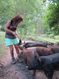 The pigs are eating Rachel's shoes!!